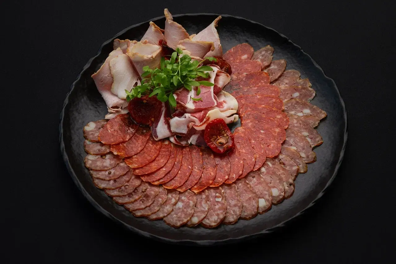 Ассорти из сальчичоне, пепперони, коппы, панчетты и ветчины в/к, где ручное изготовление подчеркивает аутентичный вкус копченостей.